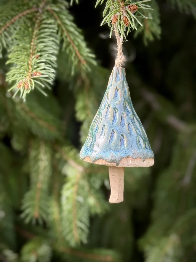 In this 2-part class, we will use templates to make cone shapes out of slabs of stoneware clay to create evergreen tree-shaped bell decorations. Don’t want to make a tree? Modify the shape to make a mushroom! In the first class, you will roll out your slabs of clay and construct your bells. They will dry slowly and I will bisque fire them at my studio, and during the second class, you will glaze them. I will fire them a second time, and let you know when and where you can pick up your finished pieces.